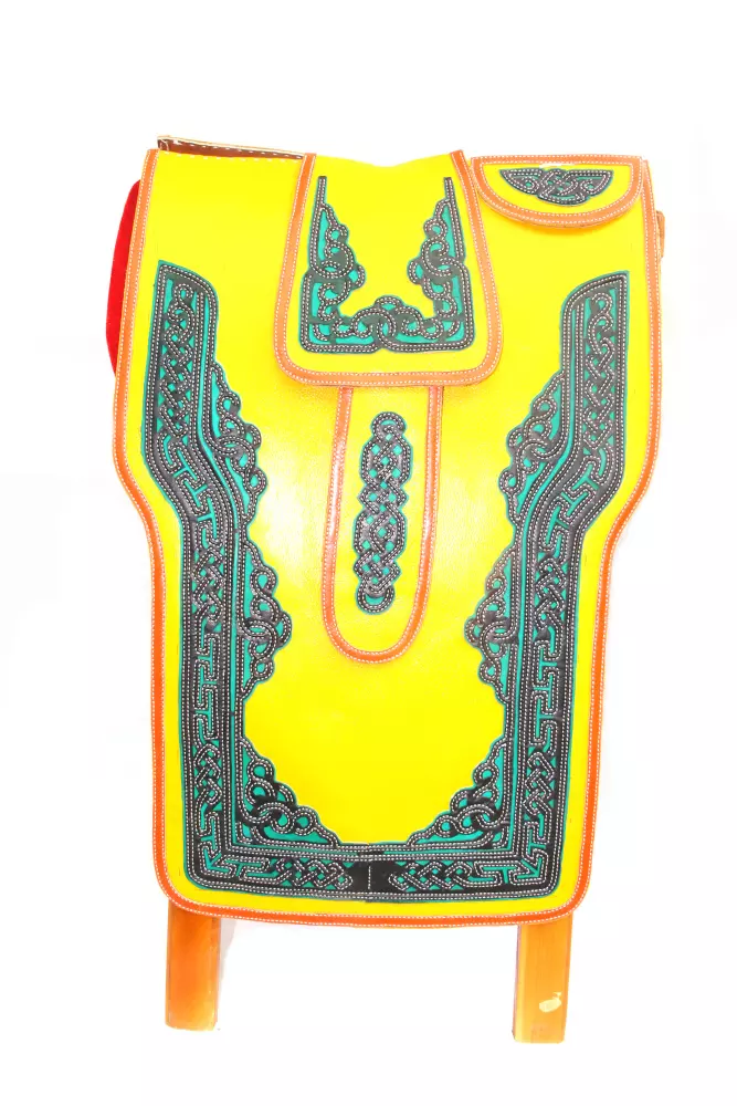 Mongolian traditional pattern carved on the saddle.